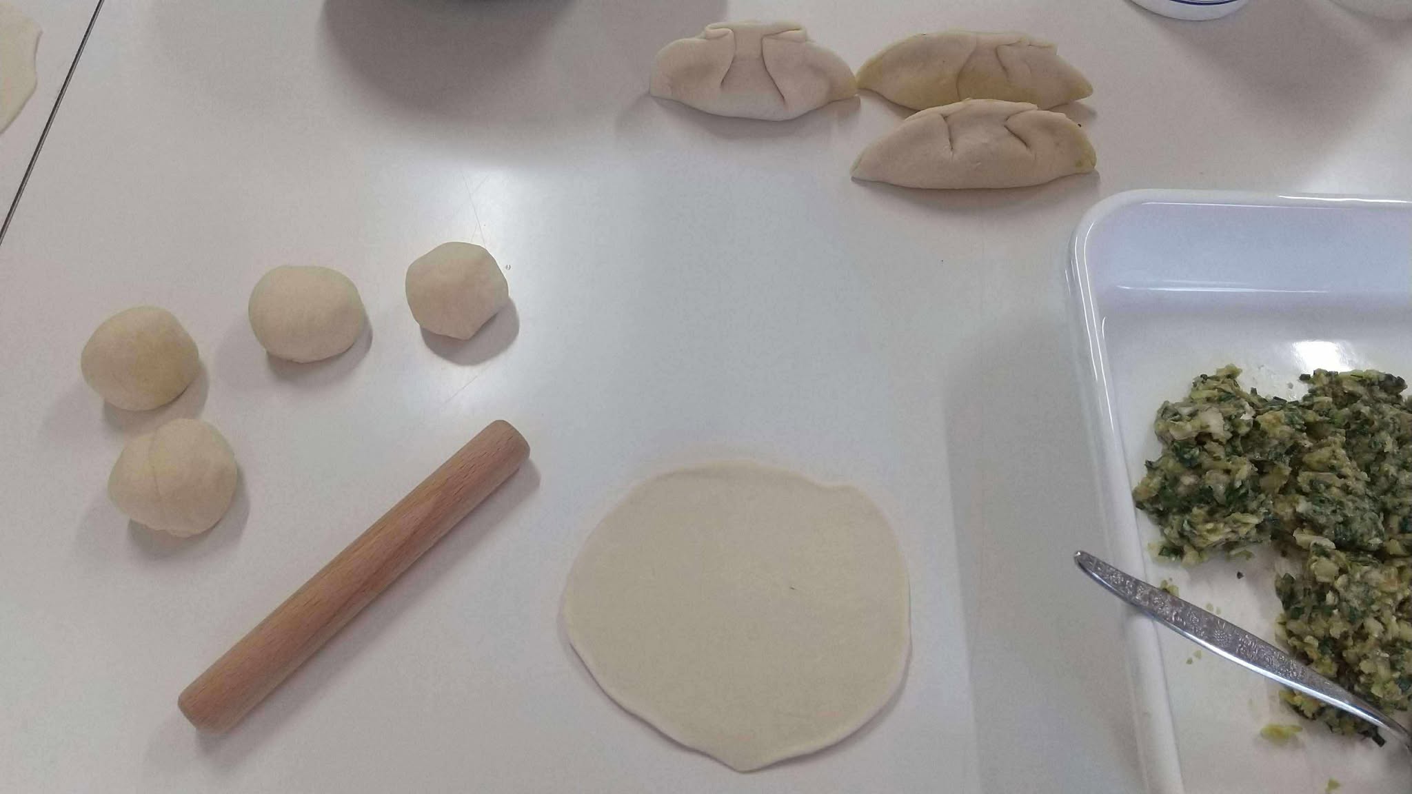 料理番長の綾子さんが一生懸命練ってくれた生地を切り分け、