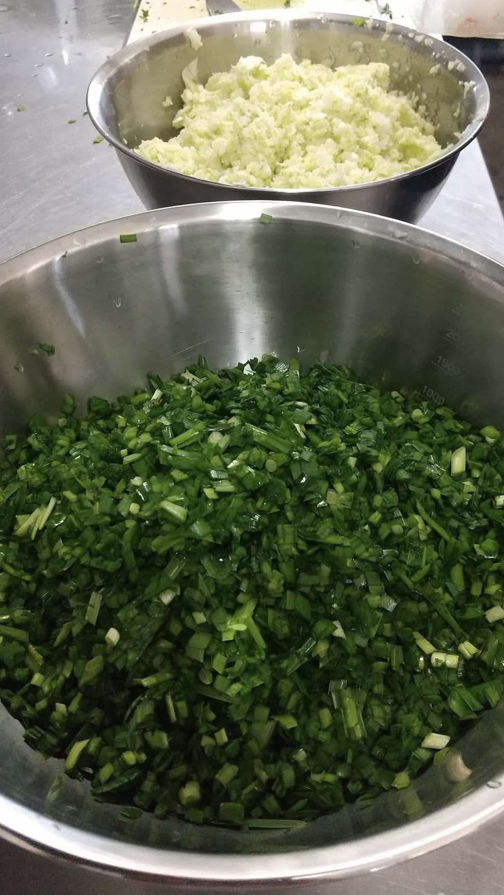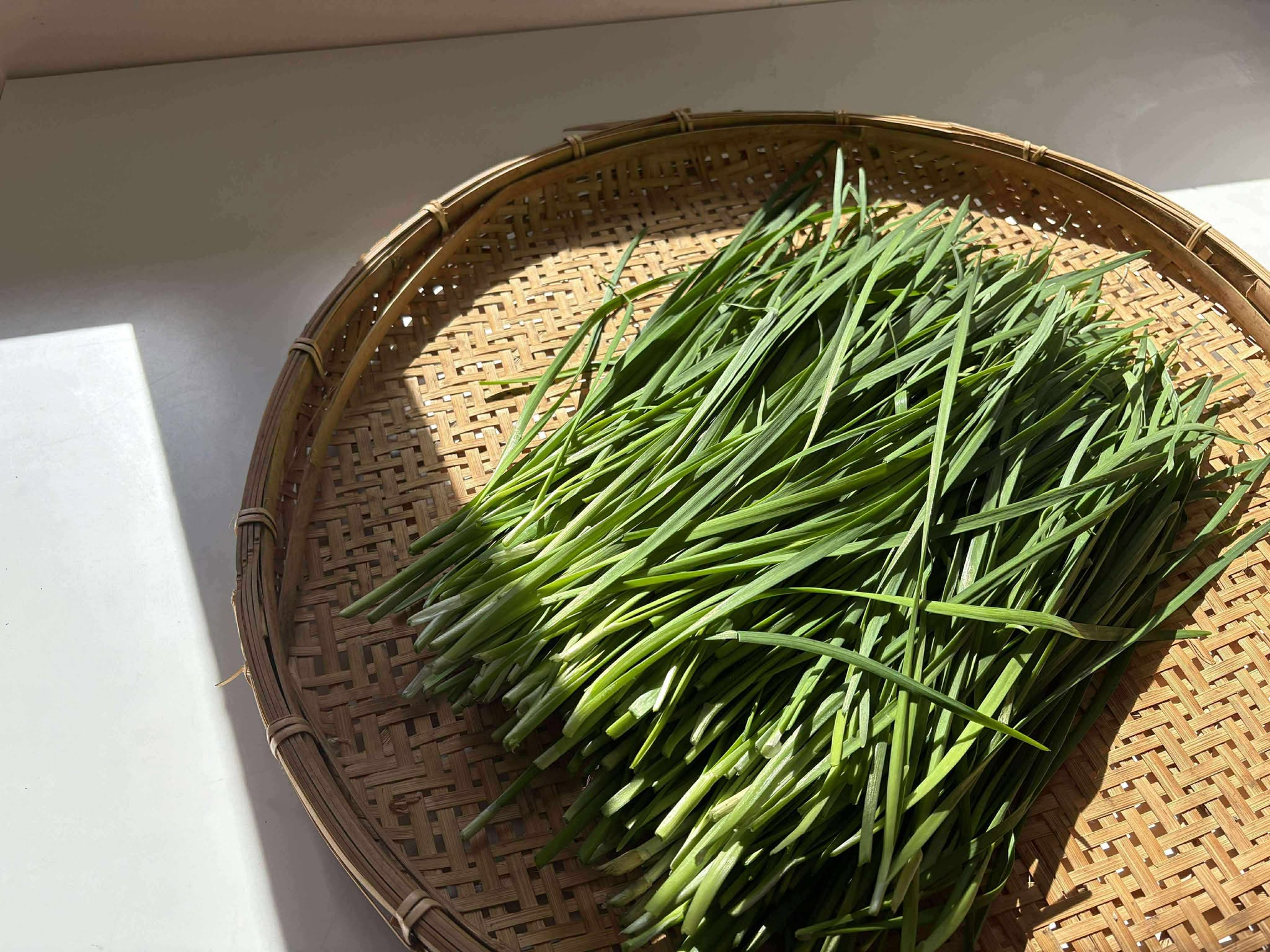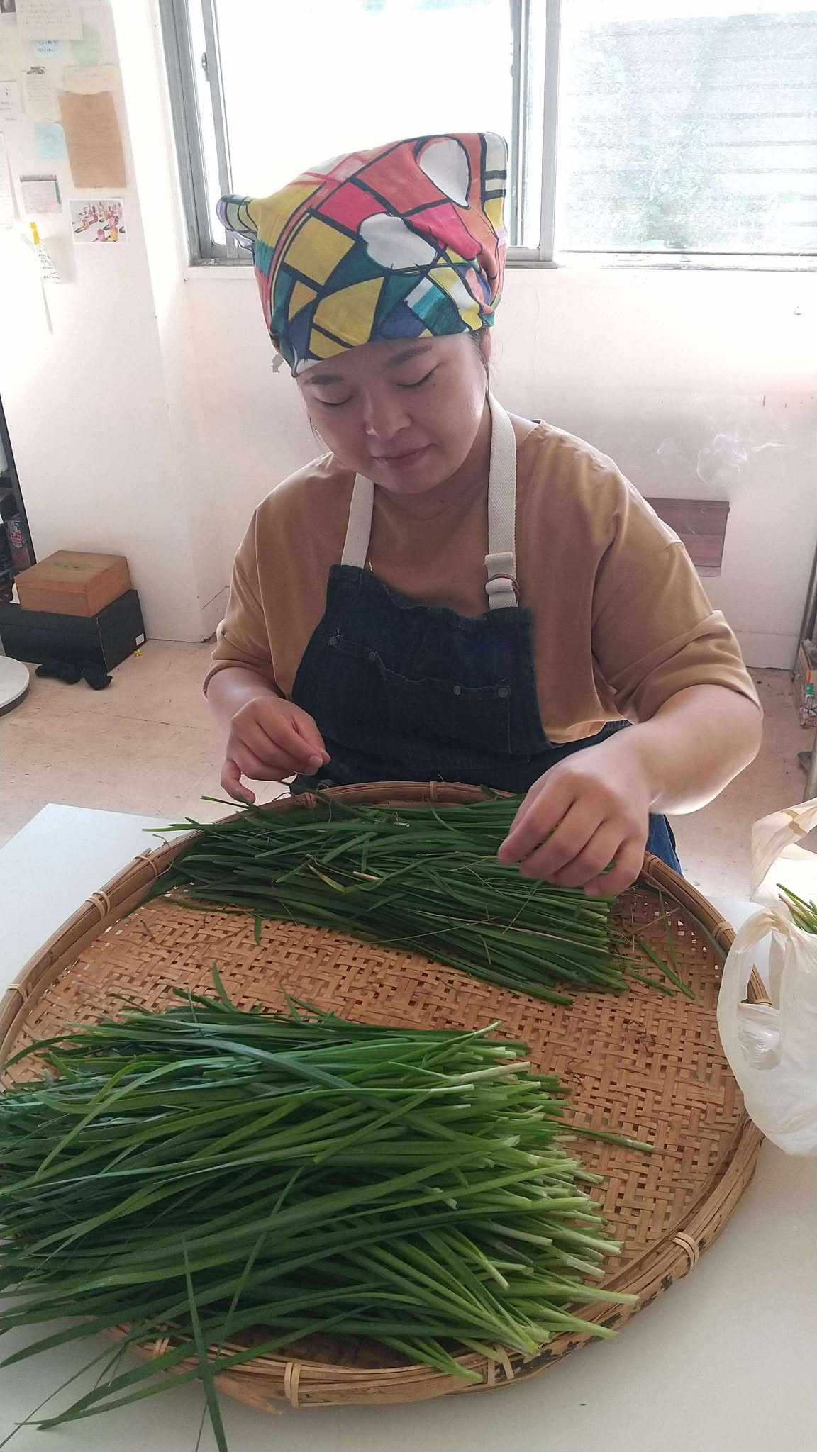 その日の朝に収穫した新鮮なニラをたっぷり使いました。