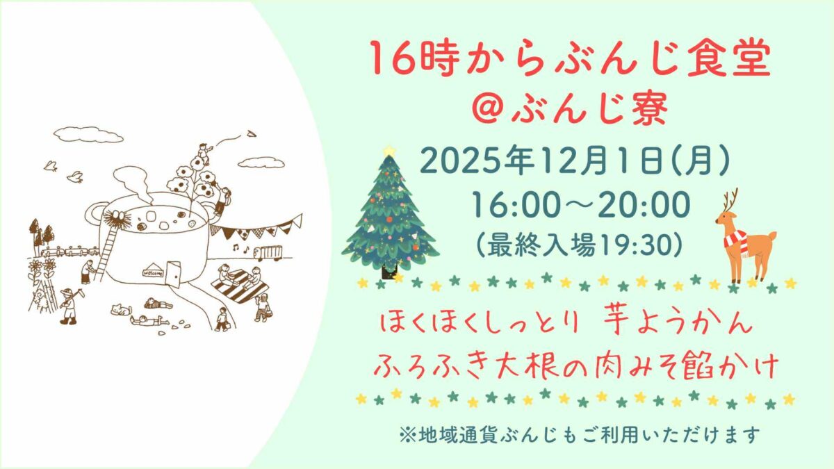 【12/01(月)開催】16時からぶんじ食堂@ぶんじ寮